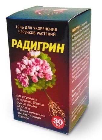 Отлично подходит для черенкования комнатных цветов с нежным стеблем - пеларгонии, фуксии, фиалки, глоксинии и других. При черенковании пеларгонии срез черенка и междоузлие обмакните или смажьте Радигрином и дайте посохнуть несколько часов, после поместите в воду или субстрат.