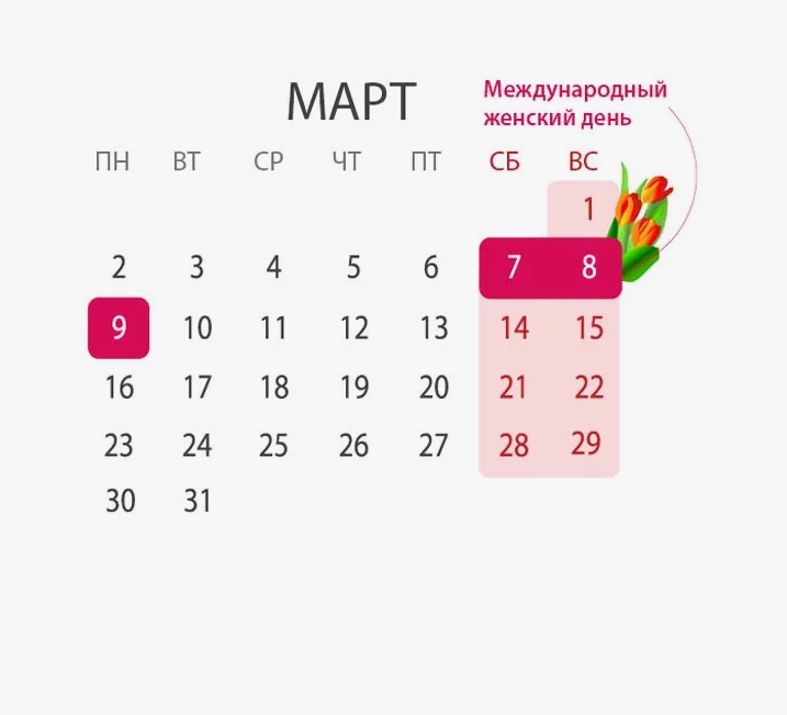 7,8,9 МАРТА -ПРАЗДНИЧНЫЕ ВЫХОДНЫЕ!