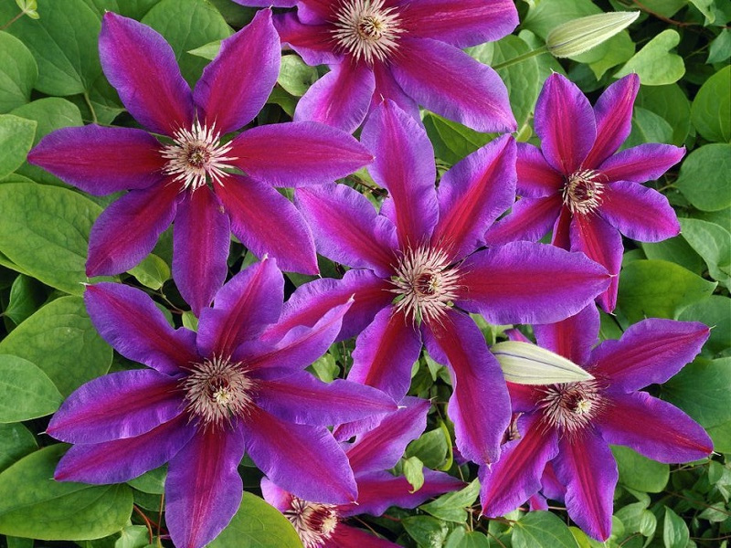 Сорт с красивыми крупными двуцветными цветками. Лепестки фиолетово-пурпурные, с ярко-красной широкой полоской посередине. Имеют края слегка волнистые. Середину цветка заполняют пурпурные пыльники, сидящие на кремовых тычиночных нитях. Нуждается в слабой обрезке. На солнечных местах цветки бледнеют и быстро отцветают. Хорош для посадки у ограждений, беседок, решёток и других садовых опор. Может виться по натуральным опорам, напр. кустарникам или полукустарникам, не требующих сильной обрезки. Подходит для выращивания в контейнерах.