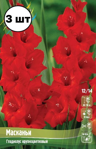 Посадочный материал упакован в перфорированный пакет с красочной этикеткой.Гладиолус – клубнелуковичное растение высотой 50-150 см с вертикальным стеблем и линейными или мечевидными листьями. Цветки воронковидные, собраны в колосовидное соцветие до 80 см длиной, самых разнообразных окрасок, могут быть простыми или гофрированными.