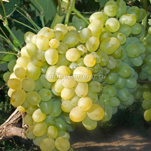 До посадки хранить при t 0+2°С.Очень раннего созревания, 100-110 дней. Столовый сорт винограда,. Кусты сильнорослые. Грозди массой 370-505 г. Ягоды крупные, слабо яйцевидные, белые, средней массой – 11,7 г. Вкус гармоничный, мякоть мясисто-сочная. Транспортабельность высокая. Морозоустойчивость -25 -26°С.