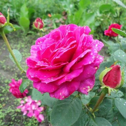 Роза Jorianda (Юрианда, юриянда, роза юрианда) / Jorianda — это подлинный триумф цвета и аромата, способный превратить ваш сад в элитный розарий, достойный обложек лучших журналов. Этот сорт моментально приковывает взгляд своим глубоким малиново-фиолетовым оттенком и аристократичной формой бутона, подчеркивая безупречный вкус и высокий статус своей хозяйки. Она создана для тех, кто ищет не просто цветок, а живое украшение, которое станет главной темой для обсуждения с гостями и предметом вашей искренней гордости. ?Этот стройный куст высотой 100–120 см отличается мощными стеблями и здоровой глянцевой листвой, на фоне которой огромные махровые чаши смотрятся по-королевски. Главное преимущество сорта — невероятный диаметр цветка до 14 см, который в сочетании с интенсивным, благородным ароматом делает его фаворитом для срезки и создания роскошных букетов. Роза стабильно цветет с июня до октября и обладает хорошей устойчивостью к болезням, требуя лишь солнечного места и стандартного зимнего укрытия для успешной