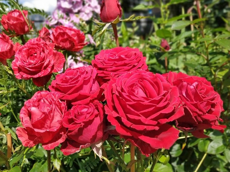 Это роскошный цветок! В каждом бутоне 100 лепестков насыщенного карминового цвета с легким фруктовым ароматом и запахом дерева. Темная листва, трепещущая на ветру, почти скрывается под обилием прекрасных цветов. Размер цветка: 10-12 см. Высота: 80-100 см. Ширина: 60 см.Местоположение: солнце.