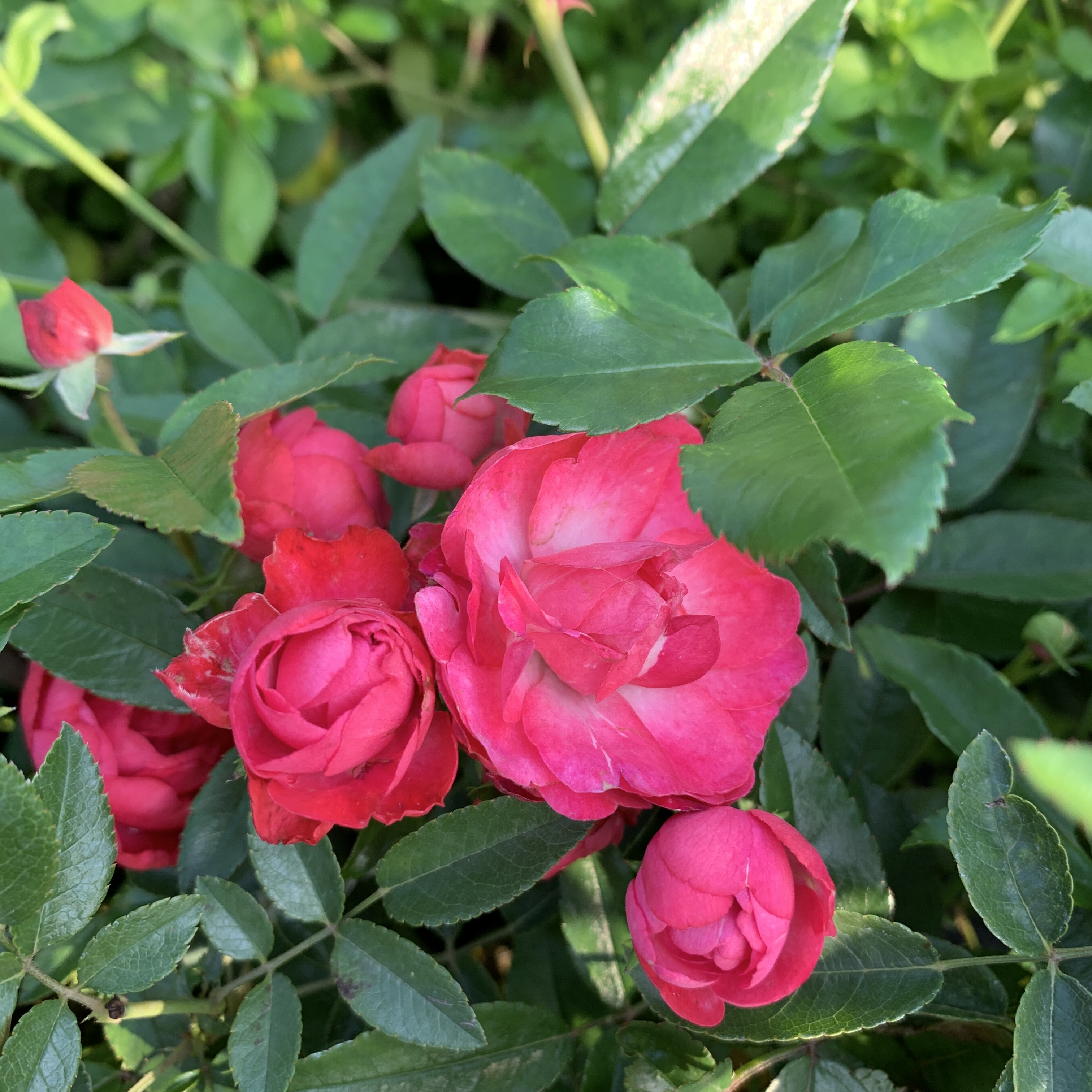 Описание полиантовой розы Морсдаг (Morsdag). Высота куста: 40-50 см. Ширина куста: 70-80 см. Количество цветков в соцветиях: 5-10 шт. Размер цветка: 4-5 см. Форма цветка: шаровидный. Цвет: красный. Листья: зеленые, блестящие. Аромат: слабый. Цветение: повторное. Устойчивость к болезням: высокая устойчивость к мучнистой росе и черной пятнистости. Устойчивость к дождю: высокая. Зимостойкость: высокая. Вы можете купить саженцы полиантовой розы Морсдаг (Morsdag) в питомнике Розебук в Подмосковье. Роза Морсдаг относится к виду почвопокровных роз с очень интересными цветками красно-малинового цвета, шаровидной формы. Махровые лепестки зачаруют своей нежностью и привлекательностью. В кисточках обычно собирается до 10 штук распускающихся бутонов, диаметром 4-5 см. Бутоны распускаются соцветиями, цветение длительное. Листья покрыты глянцем, мелкого калибра, кустарник широкий до 80 см. Высота веток достигает 50 см.