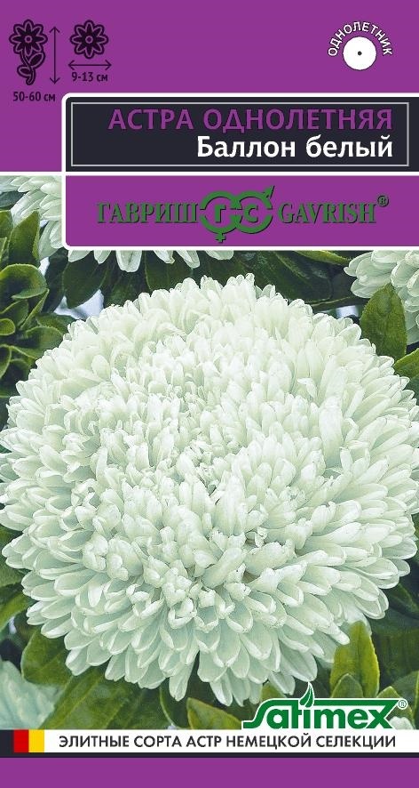 Легендарная серия астр Balloon (Воздушный шар) является абсолютным рекордсменом среди всех астр по степени махровости и плотности шаровидных соцветий. Растение пирамидальной формы, высотой 50-60 см с прочными цветоносами и крупными, пушистыми цветками диаметром 9-13 см преобразят невзрачные, пустующие места в саду, добавят ярких красок и будут радовать сочными насыщенными оттенками и воздушно-легким ароматом на протяжении длительного периода цветения. На одном кустике формируется до 6-8 соцветий нежно-белого оттенка. Выращивают, чаще всего, рассадным способом. Семена высевают в марте-апреле, пикируют с развитием первой пары настоящих листочков по схеме 5х5 см, в открытый грунт рассаду высаживают с середины мая до начала июня. Возможен посев семян в открытый грунт ранней весной или под зиму с последующим мульчированием торфом или опилками. Отличаются великолепными срезочными качествами, до двух недель стоят в воде, сохраняя декоративность. Эффектный внешний вид и некапризный характер делает серию Баллон бесспо