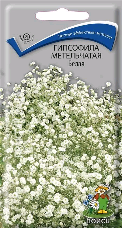 Легкие эффектные метелки на тонких стебельках. Растение высотой 90 см. Листья узкие, серовато-зеленые. Цветки белые, мелкие, махровые образуют пышное облако. Цветение обильное и продолжительное (июль-август). Используют для бордюров, каменистых горок, а также для цветочных аранжировок летних и зимних букетов.Агротехника. Растение предпочитает сухие открытые солнечные места. Морозостойкое. Посев производят в мае в разводочные гряды. Семена слегка присыпают землей. При температуре почвы +15-18°С всходы появляются на 20-30 день. В августе сеянцы пересаживают на постоянное место, выдерживая расстояние между растениями 30-60 см.