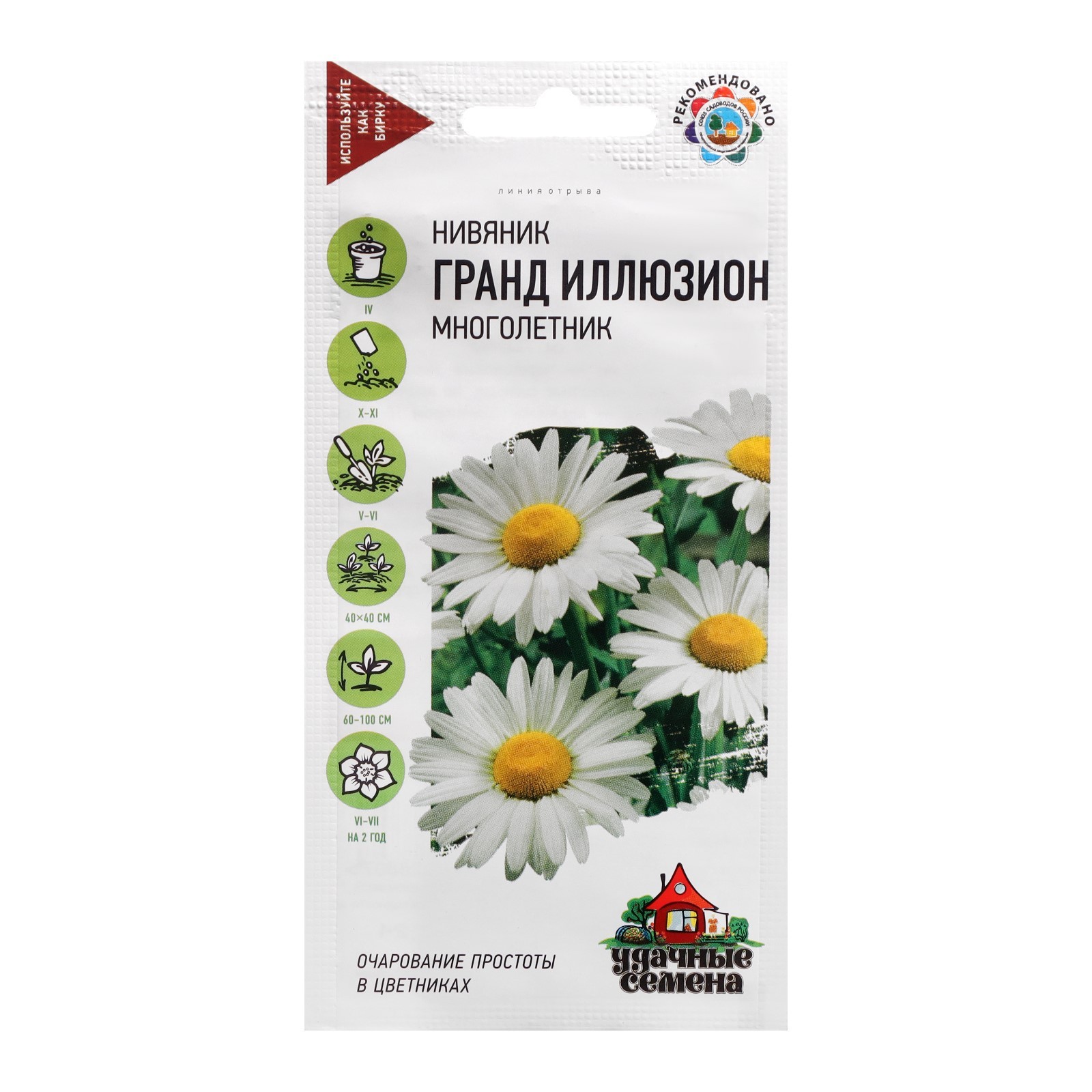 Многолетнее растение с множеством ветвистых стеблей высотой от 60 до 100 см. Листья стеблевые, нижние черешковые лопатчатые, верхние продолговатые, сидячие, по краям городчатые. Соцветия - корзинки, диаметром 10-12 см. Выращивают посевом в открытый грунт под зиму или рассадным способом. Цветет в июне-июле. Нивяник хорошо смотрится в групповых посадках на фоне декоративных кустарников, в рабатках, его можно использовать при создании одновидовых групп, которые прекрасно выглядят на газоне, на опушках, около декоративных кустарников, кроме украшения сада из ромашки получается превосходная срезка.