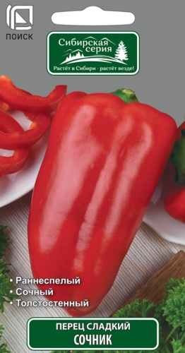 Перец Сочник – раннеспелый сорт с отличными показателями урожайности. Подходит для открытого грунта и плёночных теплиц. Период от всходов до начала созревания 95-115 дней.• Масса перца 90-120 гр.