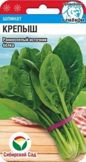 Шпинат Крепыш это раннеспелый сорт. Шпинат сорта Крепыш предназначен для весеннего и позднелетнего посева. Шпинат Крепыш прекрасно подходит для приготовления салатов, гарниров к мясным блюдам и замораживания. Листья шпината овальной формы, крупные, зеленые, глянцевые, слабопузырчатые.