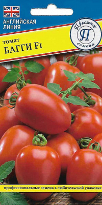 Багги F1 - ранний детерминантный гибрид томата (90-95 дней от всходов до начала созревания). Растение сбалансированное с высокой адаптационной способностью. Лист от среднего до крупного, темно-зеленый, расположение полугоризонтальное. Первое соцветие закладывается над 6-8 листом, последующие через 1-2 листа. Соцветия простые и промежуточного типа с 6-8-ю плодами. Плоды цилиндрические, прочные, устойчивые к растрескиванию. В стадии технической спелости зеленые (без пятна), в стадии биологической спелости темно-красные. Средняя масса плода 100-120 г. Отличная транспортабельность и высокие вкусовые качества плодов. Гибрид высокоустойчив к вирусу мозаики томата, вертицилезу, фузариозному увяданию и кладоспориозу, среднеустойчив к бактериальной пятнистости. Предназначен для свежего потребления и переработки (засолки, маринования и консервирования).Технические характеристики: