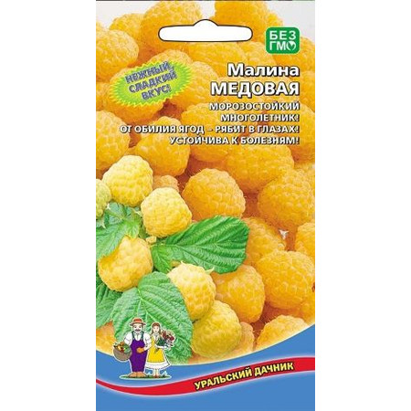 Малина Медовая. Уральский дачник. Многолетний скороплодный кустарник высотой 1,5-2,0 м из семейства Розоцветные, с однолетними и двулетними надземными побегами, многолетним корневищем и придаточными корнями. Малина зацветает сразу после весенних заморозков. Плодоносит через месяц с начала цветения в течение 30 дней. Плод – сборная костянка (чаще называют ягодой), ярко-желтого цвета, округлая, массой 2,0-4,5 г. Ягоды нежные, сладко-кислые, освежающего вкуса. Светолюбивое растение, предпочитает плодородные, защищенные от ветра, умеренно влажные почвы (не выносит заболоченных участков), с уровнем залегания грунтовых вод не выше 1,5 м от поверхности почвы. Семена перед посевом стратифицируют во влажном песке, при температуре +2С, в течение 3-4 месяцев, время от времени увлажняя субстрат. Весной семена вместе с песком высевают на грядки или в ящики на глубину 0,5 см. В качестве субстрата используют смесь торфа и хорошо удобренной садовой земли (1:1). Всходы появляются неравномерно.